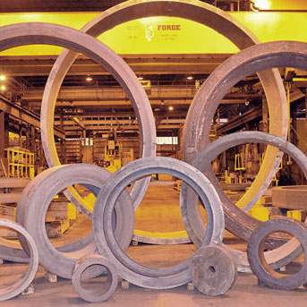Single-piece or high-volume ranging from a few lbs. up to 440,000 lbs. Complex Shapes, Disk, Blanks, Hollow, Hubs & Tooled Forgings, Semi-Closed Die, Step Shafts/Spindles & Torch Cut or Profile Cut.